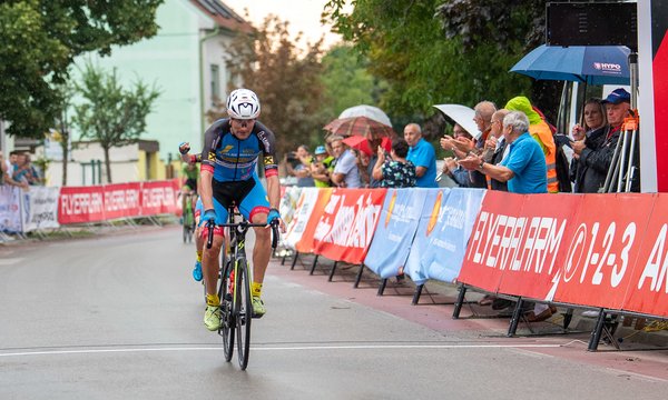 Endlich hat es auch für Manuel Bosch geklappt: Der Felbermayr-Radprofi konnte das heutige Radbundesliga-Rennen in überzeugender Manier für sich entscheiden: Immer wieder war der Topfahrer in den Spitzengruppen zu finden und in der drittletzten von insgesamt 8 Runden zu je 21,5 Kilometer ergriff Bosch die Initiative und startete eine Soloflucht. Obwohl ihm sein Teamkollege Daniel Lehner und Jonas Rapp vom Hrinkow Advarics Cycleangteam immer näherkamen, schaffte es Manuel Bosch als Führender ins Ziel: Nach insgesamt 3:43:23 Stunden und mit einem sensationellen Schnitt von 46,2 km/h konnte der Tiroler in Neudörfl seinen Premierensieg für das Team Felbermayr Simplon Wels bejubeln. Zeitgleich erreichte Teamkollege Daniel Lehner das Ziel und machte damit den Welser Doppelsieg perfekt. Daniel Turek gewann den Sprint der Verfolger und landete auf Platz 4, Ziga Groselj als 7. und Riccardo Zoidl als 9. komplettierten das tolle Mannschaftsergebnis.