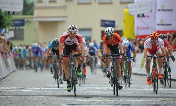 Sechs Fahrer, davon fünf vom Tirol Cycling Team, starteten heute bei dem dreitägigen Etappenrennen „Course de la Paix“ in Tschechien. Ein sehr bergiger Streckenverlauf stellt die Teilnehmer aus über 20 Nationen jedes Jahr aufs Neue auf die Probe. Doch schon im letzten Jahr konnte ein Fahrer aus dem Welser Team mehrmals sein Können beweisen. Gregor Mühlberger holte nämlich nicht nur einen Etappensieg nach Österreich sondern auch noch den Gesamtsieg. Bei der ersten Etappe konnte auch heuer erneut ein Athlet aus dem Welser Rennstall auf sich Aufmerksam machen. 133 Kilometer führten mit drei Bergwertungen von Jesenik nach Rymarov. Daniel Auer fühlte sich von Beginn an sehr gut. Diese gute Form war schlussendlich im finalen Sprint auch entscheidend für den sensationellen Sieg. „Mit einem Sieg habe ich wirklich nicht gerechnet, weil ein Holländer einen Solovorstoß machte. Knapp vor dem Ziel gelang es uns aber, den Ausreißer zu stellen und somit war der Sieg wieder in Reichweite. In der entscheidenden Kurve 400 m vor dem Ziel konnte ich trotz meiner weniger optimalen Position gut herausfahren und bergauf noch einmal Vollgas geben und als Erster über die Ziellinie fahren“ Daniel Auer, der somit im Fotofinish die erste Etappe für sich entscheiden konnte, freut sich gemeinsam mit dem U23 Nationalteam und dem Team Felbermayr Simplon Wels darüber, die morgige Etappe im neonrosa Führungstrikot antreten zu können.